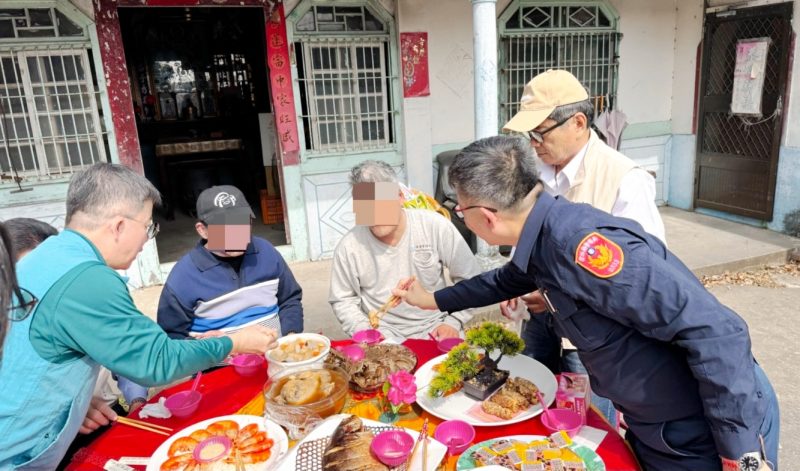 據了解,北港鎮的76歲的蔡老翁一生未婚,依賴社會補助生活;52歲獨居的陳姓男子則因智力障礙無法謀生,長期以來多依靠鄰里和社會服務單位的幫助,2人已許久未曾享受過一頓像樣的年菜。張榮發慈善基金會經理劉益志、課長王裕君、專員夏瑭昱送上春節紅包、物資,北辰派出所則請來北港知名外燴總鋪師「阿檳」製作了一桌澎湃的年菜大餐,還邀來里長王趁和勤務中心主任陳文智及警所同仁陪伴圍爐,大家邊吃邊聊,分享彼此的生活與故事。
