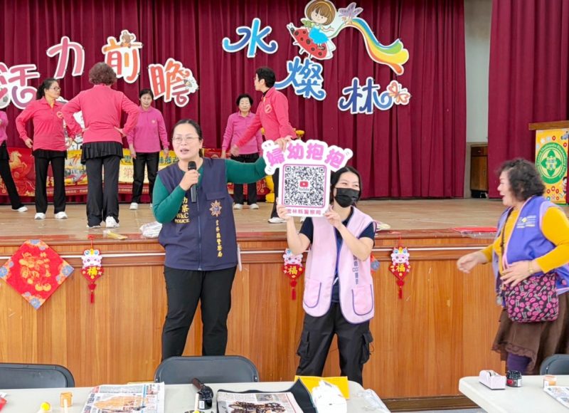 為提高民眾對婦幼安全及防詐騙的警覺,雲林縣水林鄉老人會於115年度辦理的「馬舞春水•富貴萌林•長者迎春玩拓畫暨社會福利宣導」活動中,北港警分局積極參與,派遣「識詐-婦幼-交安宣導團」到場進行相關宣導。