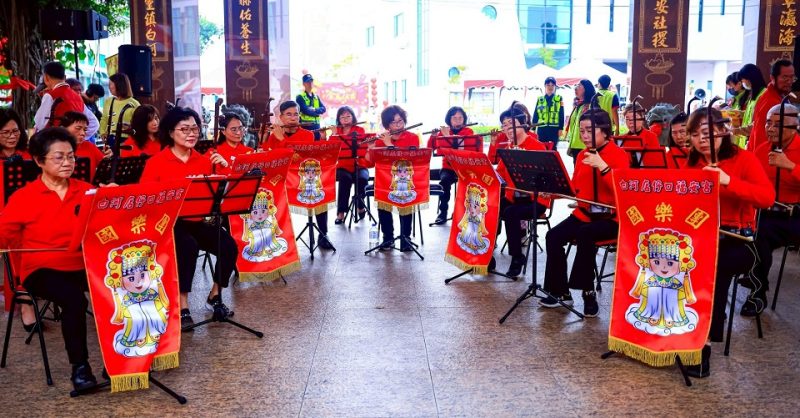 活動由河東國小附設幼兒園活力滿滿的表演開場,隨後,董麗華區長及5位書法老師現場提筆揮毫,伴著福安宮國樂團與星期二樂團悠揚的樂聲,現場吸引大量民眾排隊索取春聯。