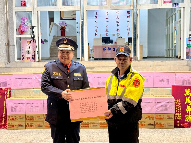 張縣長對大家在寒風中辛勤工作、無私奉獻表示感謝,並當場致贈慰問品,感謝他們在這個傳統佳節期間,犧牲與家人團聚的時光,為社會治安付出的努力。