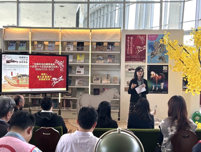 另一檔自2月15日開展的「地緣政治的國際萬象ᅳ十四至十九世紀的東亞世界」,則將觀眾視角拉至近世東亞國際秩序的形成與轉變。書畫文獻處策展人鄭淑方助理研究員表示,展覽關注自明立國以來,明清中國、朝鮮、日本與琉球之間的外交互動與政治角力,探討以「職貢體制」為核心的國際秩序如何運作,並呈現其在不同政權策略下的認同、調整與挑戰。透過地圖、圖像與相關文獻,引導觀眾理解東亞地理空間如何影響政治結構,與使節往來、書畫交流在國際秩序建構中所扮演的角色。