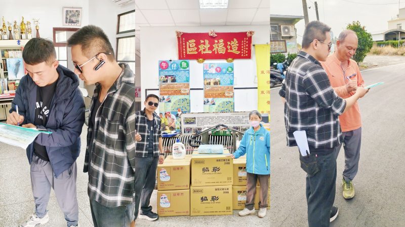太源社區發展協會黃山田理事長、屏東縣枋寮鄉地利社區發展協會、屏東縣枋寮鄉人和社區發展協會、屏東縣枋寮鄉新龍社區發展協會、屏東縣枋寮鄉大庄社區發展協會、屏東縣枋寮鄉東海社區發展協會、屏東縣枋寮鄉愛鄉協會、屏東縣枋寮鄉體育會 各單位與社區志工的協力下,展現跨村動員的關懷量能,成功建構具體可行的在地關懷體系,順利完成關懷物資發放。