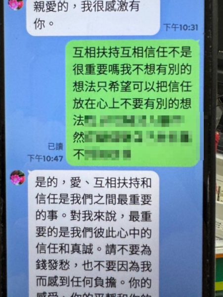 昨(23)日下午 2 時許,吳女前往成功路1家銀行準備辦理跨國匯款時,行員機警察覺該受款帳戶資訊異常,且吳女對於匯款用途交待不清,隨即通報民權派出所。巡佐王潛粕、警員鄭亦晉獲報抵達後,詳細查看吳女的對話紀錄,發現對方不僅要求跨國匯款,還教導吳女應付銀行詢問的術語。員警當場向吳女剖析,這是典型的「假交友真詐財」手段,對象通常設定為事業有成的專業人士,並透過「甜言蜜語」建立信任,最後再以投資或急用款項為由騙取金錢。吳女在員警與行員的共同勸導下,冷靜思索後驚覺對方口中的「美好未來」全是謊言,及時打消匯款念頭,成功保住了辛苦存下的 38 萬元生活積蓄,並對警銀的及時攔阻表示由衷感激。
