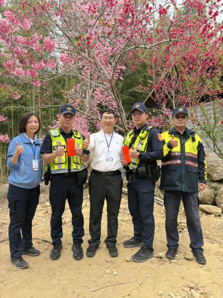 雲林縣草嶺石壁櫻花季期間車潮湧現,為維護賞花民眾交通安全與行車順暢,雲林縣警察局局長黃局長特別前往現場,慰勉執行交通疏導勤務同仁,並親自發放慰勤紅包,為大家加油打氣。
