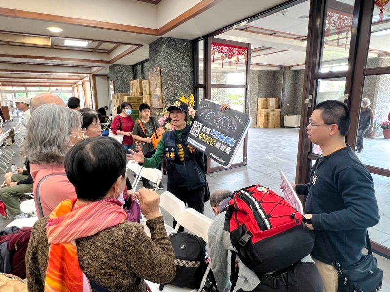 現場還有熱心志工主動協助宣導活動,師兄師姐們專心聆聽、踴躍互動,氣氛溫馨而熱絡。更有民眾分享朋友遭詐騙高達600萬元的真實經歷,令人心疼,也再次提醒大家,詐騙手法層出不窮,務必要多一分警覺、多一分查證。