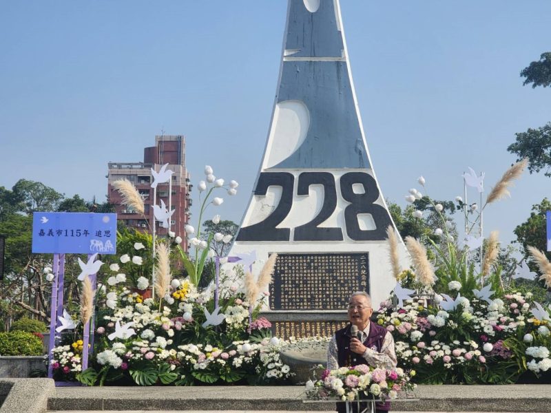 嘉義市政府今(26)日上午在嘉義市二二八紀念碑前舉辦二二八事件79週年追思紀念儀式,嘉義市長黃敏惠、率領市府主管偕同總統府資政張博雅、陳姿妏議長及多位議員、立法委員王美惠、林倩綺,嘉義市二二八紀念文教基金會江榮森董事長與多位牧師、受難者家屬等各界貴賓,於全台第一座二二八紀念碑前舉辦追思紀念會,在莊嚴肅穆的氛圍中追思歷史,表達對受難者的哀悼與對家屬的深切關懷。