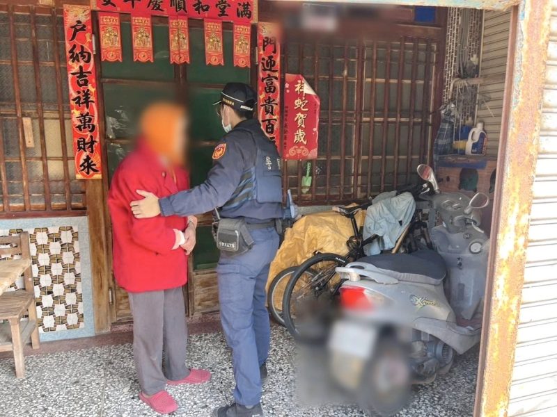 日前13時許,臺西分局飛沙派出所員警執行勤務時,接獲熱心民眾報案,稱有一名老婦人在四湖鄉三姓村路上徘徊,在同一路段不斷往返,看似需要幫助,希望警方能幫忙給予協助。