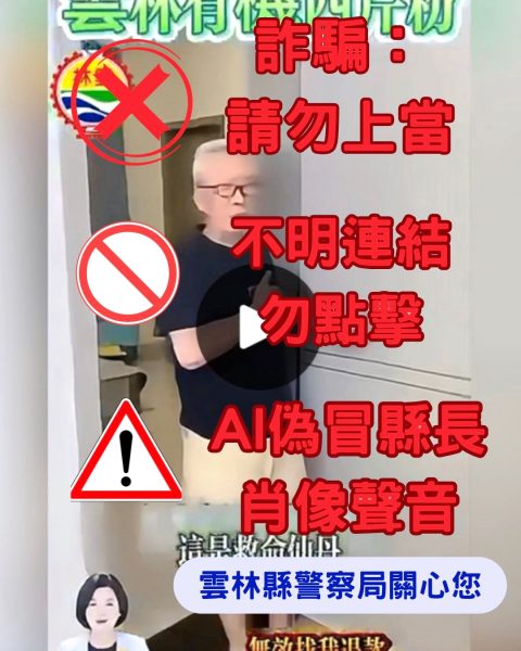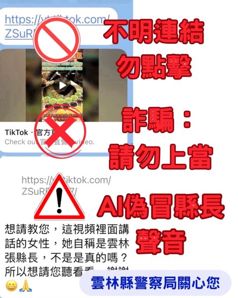 有關近日網路平台出現冒用雲林縣長張麗善影像及聲紋之不實廣告,經雲林縣政府通報為偽冒訊息,雲林縣警察局於接獲通報後隨即啟動強力偵辦作為,並發布嚴正聲明:經查近期於臉書(Facebook)出現之「有機西芹粉」廣告,以及 TikTok 平台上以 AI 深偽(Deepfake)技術偽造縣長聲音之「雲林翡翠綠蠶豆」販售影片,均係不法詐騙集團移花接木之作。