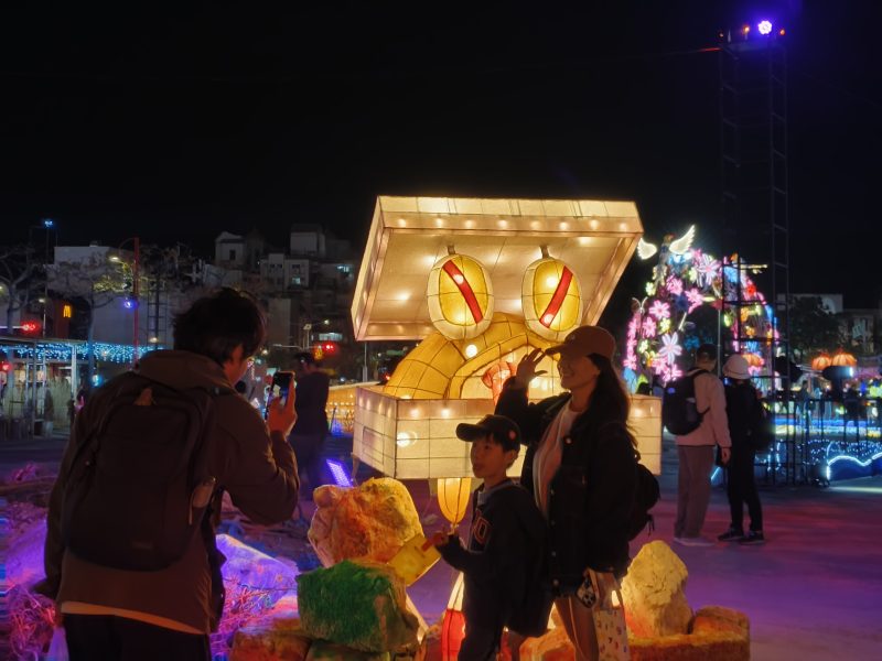 2026台灣燈會在嘉義,人潮滿滿越夜越美麗,來自世界各地的親子遊客走進「永續海洋燈區」都會大聲驚呼:真是太可愛了!鯨魚戰艦周邊是無人機展演的最佳觀賞地點之一。