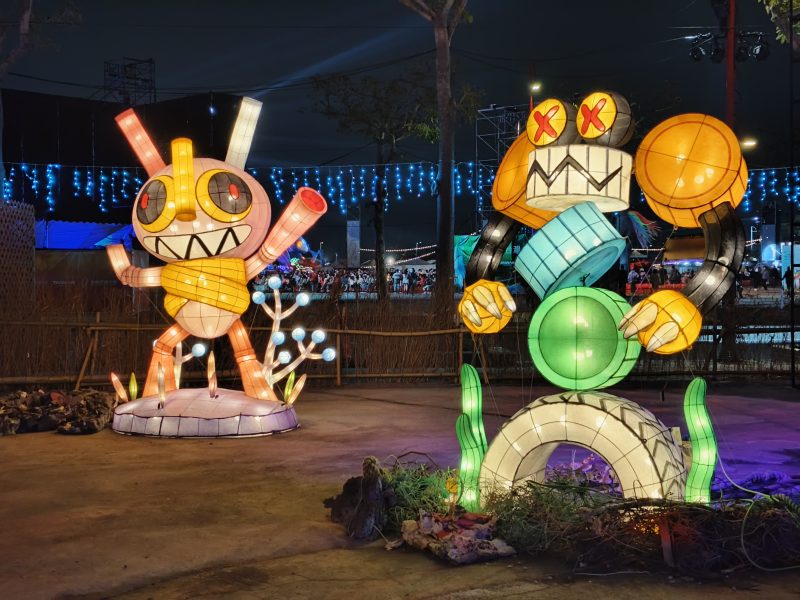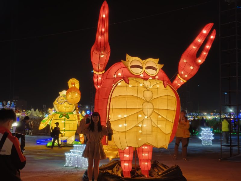 「永續海洋燈區」以海洋世界為主題,燈區內的12隻英雄聯盟與海廢怪,呆萌形象受到許多遊客的喜愛。台北高小姐說今年台灣燈會真的很有看頭,永續海洋燈區呆萌的12隻海洋動物及海廢怪超級好拍。