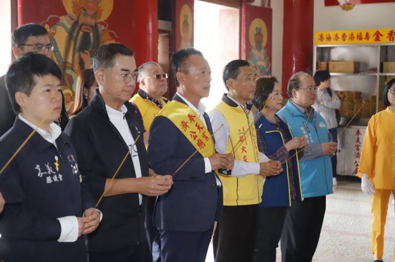嘉義縣長翁章梁於今(15)日上午前往水上奉天宮濟公廟拜致贈匾額題字「濟世弘慈」,廟內莊嚴肅穆、廟貌巍峨壯觀,香火鼎盛,香客絡釋不絕。