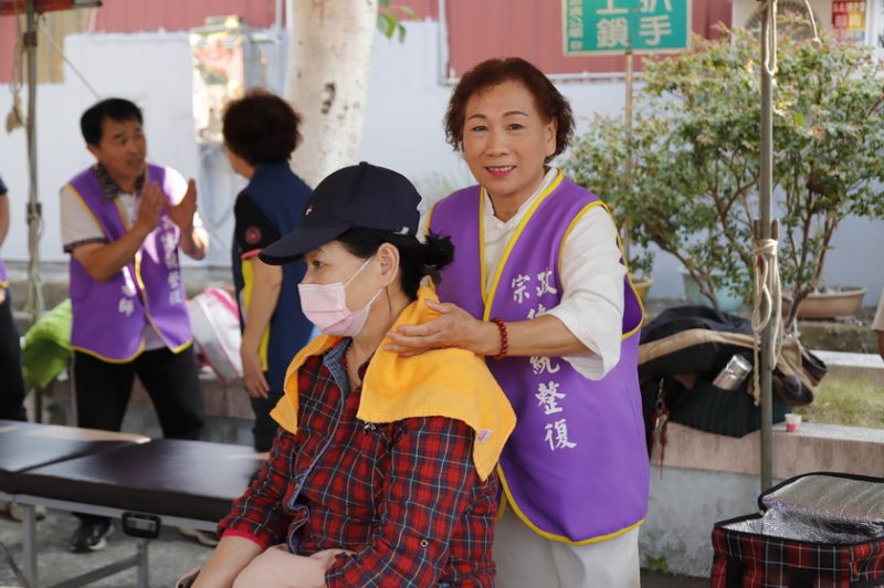 今廟埕廣場同時舉辦道濟春暖活動,包含發放救濟物資、健康檢查、義剪、經絡按摩、茶席及歌唱表演等服務。