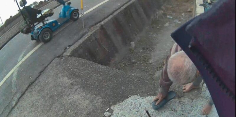 經警方耐心詢問,老翁表示當時騎乘電動代步車行經該路段,疑似因臨時下車時重心不穩,不慎在路邊跌倒。由於年事已高、行動較為緩慢,一時難以自行起身,所幸警方巡邏經過即時發現。警方除細心查看其手腳是否擦挫傷外,也關心是否有頭暈或其他不適情形,並主動詢問是否需要協助就醫或通知家屬到場。老翁表示僅受到驚嚇,身體並無大礙,婉拒就醫,對警方即刻伸出援手頻頻道謝。
