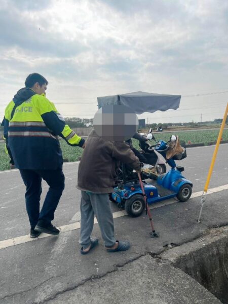 考量老翁行動不便,且產業道路車輛偶有往來,為確保其安全,警方協助確認電動車狀況正常後,並陪同老翁騎乘返家,沿途在旁守護,隨時注意其行車情形。待確認老翁平安抵達住處、順利進入家中後,警方才放心離去。溫暖的守護身影,也為寧靜的鄉間增添一份人情味。