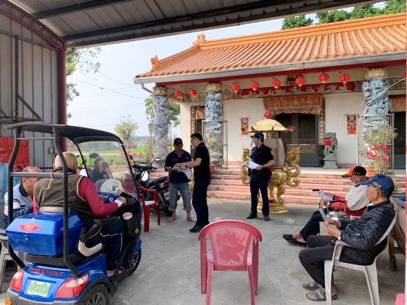 大埤分駐所所長許展育與警員林于聖,除誠心向土地公祈求轄內交通順暢、治安平穩、居民出入平安,並把握參拜香客聚集的機會,發放反詐騙宣導單及精美宣導品,針對各種詐騙手法向來參拜的高齡長者說明常見的詐騙手法。例如詐騙集團常利用「假冒公務機關」、「假投資」以及「猜猜我是誰」等方式,騙取民眾積蓄。