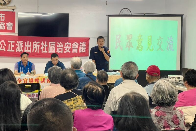 為強化社區治安與交通安全觀念,雲林縣警察局斗六分局公正派出所於日前舉辦「治安座談會」,由斗六公正派出所所長王俊升主持,邀請地方里長、里民及社區民眾踴躍參與,透過面對面交流方式,宣導預防犯罪與交通安全觀念,凝聚警民合作力量,共同維護社區安全。