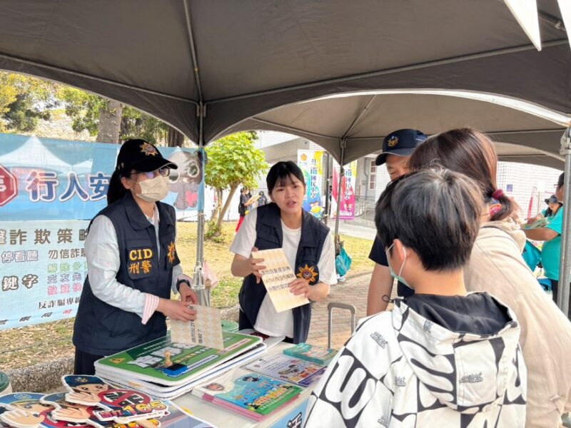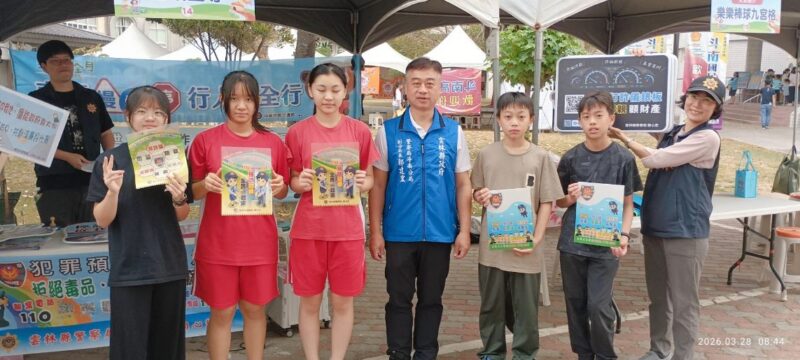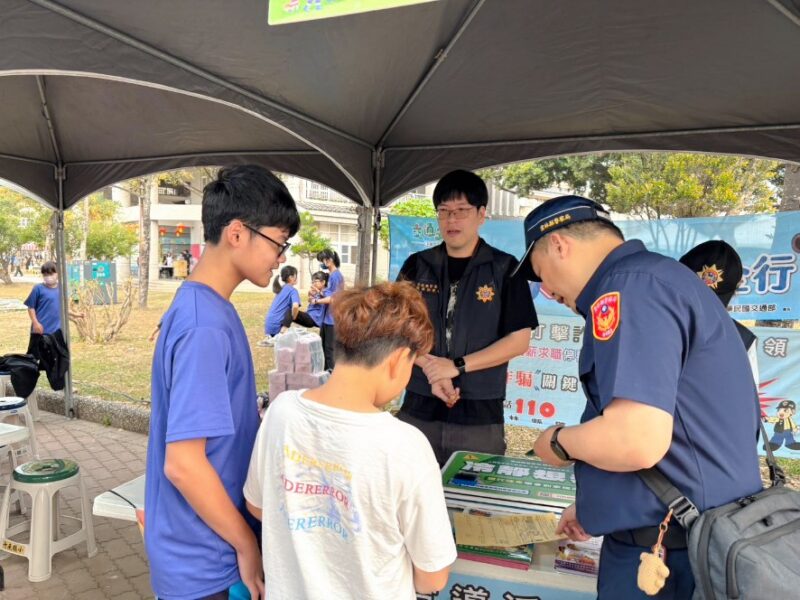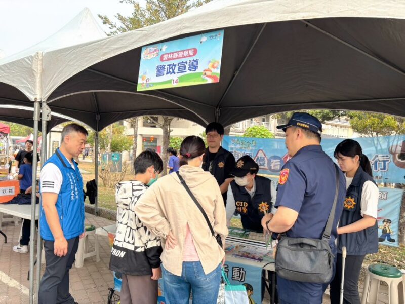 斗南警分局員警走入校園,與現場師生及家長熱烈互動。林文智分局長特別叮嚀,安全教育應從幼扎根,警方在活動現場設置宣導攤位,透過實際案例與淺顯易懂的圖卡,向家長及學童講解預防詐騙、交通安全守則(如:過馬路停看聽、配戴安全帽)、婦幼安全守則(如:網友裸聊要注意)以及反賄選觀念等。