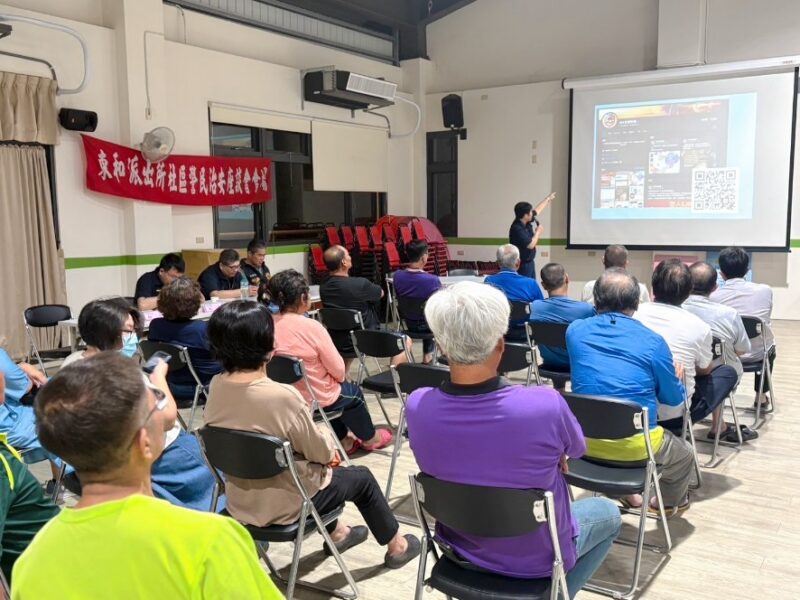 為強化社區治安與提升民眾安全意識,斗南分局東和派出所日前於古坑鄉棋盤社區活動中心舉辦社區治安座談會,由所長高易翔主持,分局長林文智親自率各組、隊長列席參加,現場吸引眾多社區居民踴躍參與,氣氛熱絡。
