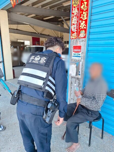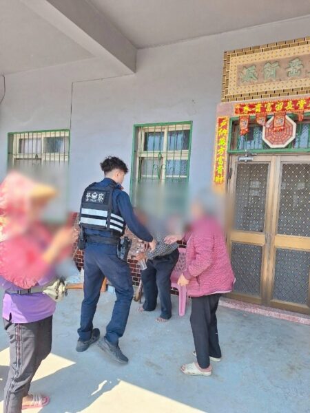 日前中午12時許,臺西分局麥寮分駐所副所長顏記輝、警員廖唯鈞執行勤務時,接獲民眾報案稱麥寮鄉崙後村有名老人打赤腳蹲坐路旁,希望警方能前往協助。