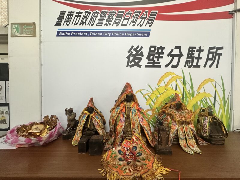 白河分局受理報案後,立即組成專案小組進行調查,不到3小時由後壁所所長率員警找到失竊之5尊神像及木牌,並將神尊請回所內。