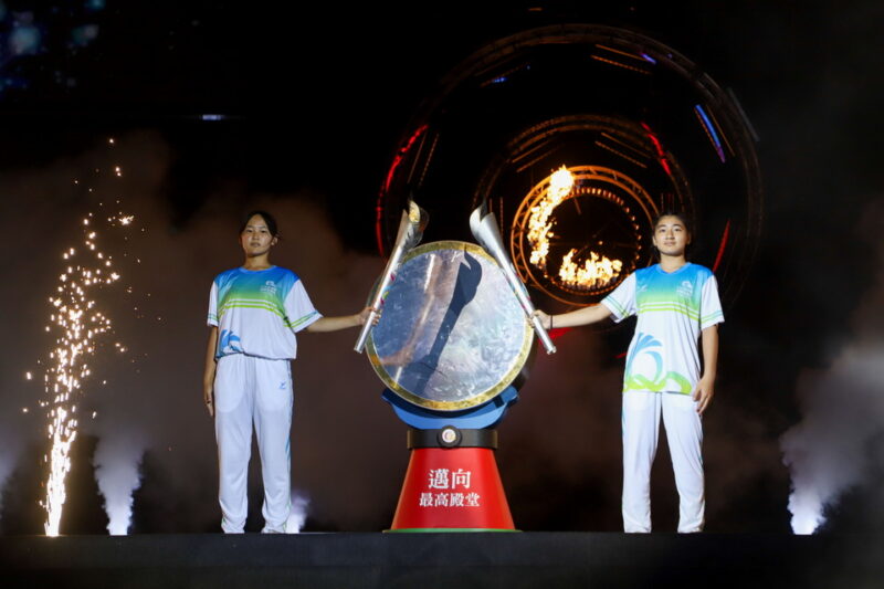 115年全國中等學校運動會昨(18)日下午17:00在嘉義縣棒球場隆重舉行開幕典禮,總統賴清德、運動部部長李洋及嘉義縣長翁章梁等貴賓共同出席,隨著聖火點燃,煙火綻放在夜空中,正式宣佈台灣中等學校最高層級體育賽事登場。