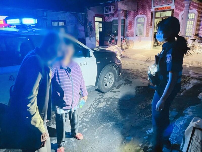 暗夜裡進出廠區車輛繁多,老翁一人騎乘腳踏車徘徊路中間相當危險,員警詢問過程中,發現老翁身體狀況良好、意識清楚,但無法清楚表達自己住在何處,僅記得自己的姓名,因此員警先將老翁帶返所休息,並利用警政系統查詢,得知老翁居住於崙背鄉,員警立即協助將老翁送返崙背住家。