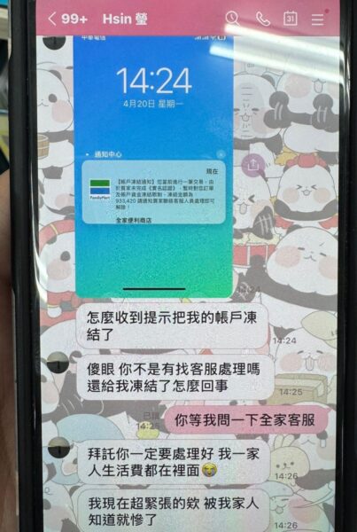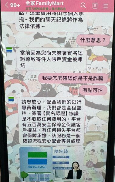 據了解,許女日前在網路選購瑜珈墊等運動用品,對方要求加入通訊軟體 LINE「HSIN 瑩」進一步討論交易細節,並引導許女使用便利商店的物流平臺進行操作。交易過程中,對方突然傳來訊息,謊稱許女因操作錯誤,導致賣方的銀行帳戶遭到凍結。對方隨後煞有其事地指示,許女必須透過手機網路銀行輸入一組「38590」的認證碼進行「實名認證」,聲稱如此才能解除帳戶凍結並完成交易。許女雖對此程序心生疑慮,但因擔心造成對方困擾,一度猶豫是否照辦,最終決定先到派出所諮詢。