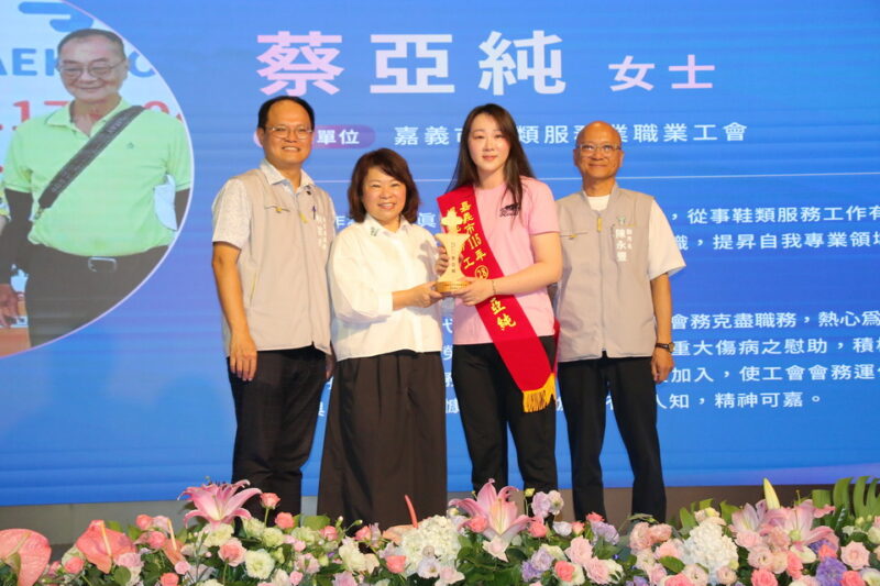 鞋類服務業工會推薦的蔡亞純,從業19年來始終勤勞負責、敬業樂群,除本職工作表現亮眼外,亦積極協助工會辦理各項活動及關懷弱勢,長期投入公益且行善低調,展現高度職業道德與服務精神。