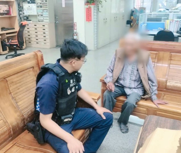員警確認老翁安全後,立即將老翁帶上巡邏車載返派出所,以便聯繫家屬,為避免老翁血糖過低,先行提供小點心供老翁充饑,閒聊間,發現老翁無法正常對答,老翁不知道自己身在何處,員警嘗試安撫老翁情緒後,老翁才能安心說出自己名字。