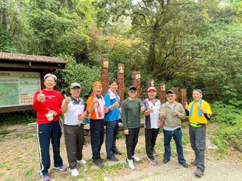 本次活動中,同仁沿著古道健行,前段路程平緩,柳杉林立、林蔭蔽日,後段則為階梯下坡,伴隨舊鐵道遺跡延伸於側,景致幽靜壯麗。參與人員在綠意環繞中放鬆身心、自在呼吸,充分感受山林之美,達到紓壓與運動兼具的效果。行程結束後,一行人並至當地品嚐特色甕仔雞,為活動增添溫馨與歡樂氣氛。