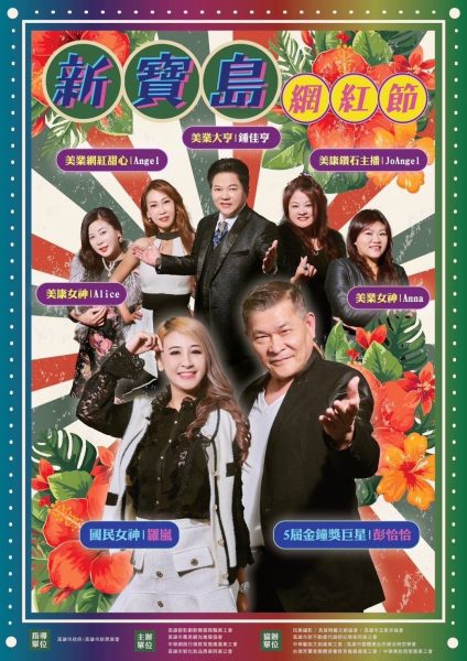 由中華網路行銷教育推廣產業工會、高雄都影劇歌舞服務聯業工會、高雄市鳳邑觀光推展協會、高雄市新化妝品商業同業公會共同主辦「新寶島網紅節」,報名開跑啦!即日起到 5 月 20 日,一律採線上報名方式