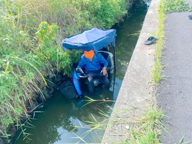 老翁醫療代步車跌落水溝 警消合力搶救脫困送醫