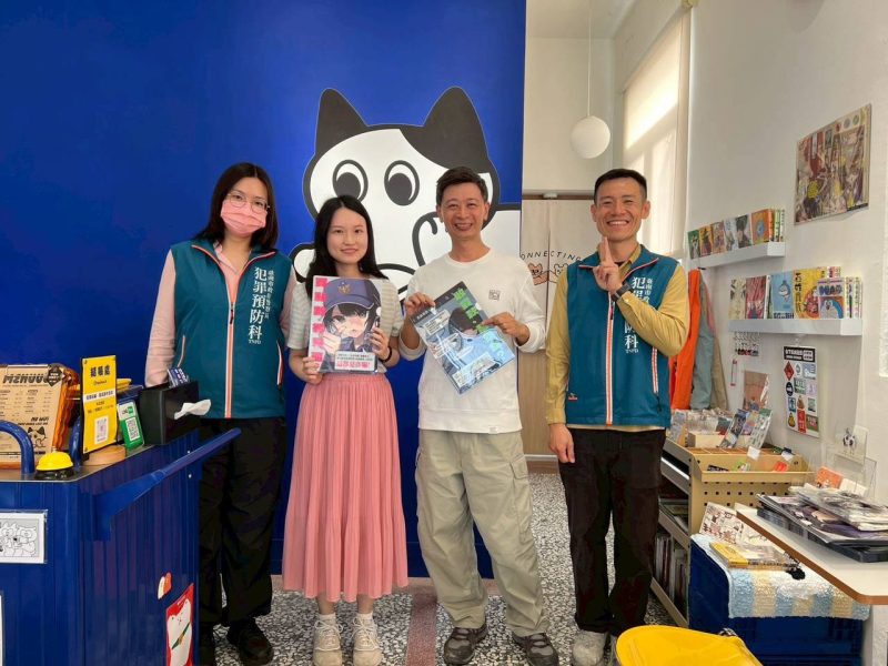 臺南市政府警察局為落實市長黃偉哲「打造安全宜居城市」理念,落實「分群分眾」、「精準打擊」宣導策略,與獨立書店「白丁書店」跨界合作,將南市警局員警自行設計的動漫風格防詐資料夾,進駐在地臺灣漫畫文化空間,開放民眾索取。