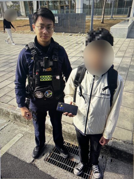 南警第一分局莊敬派出所巡佐楊元林、警員朱晉廷,日前清晨接獲民眾報案,指稱有一名外籍男學生急需警方協助。員警立即趕赴現場了解,得知該學生自臺南市南區六信高中搭乘公車至東區中華東路與平實五路口下車時,驚覺隨身手機不慎遺失。由於語言表達能力有限,他一時十分慌張,幸好有熱心民眾主動伸出援手,協助報警求助。
