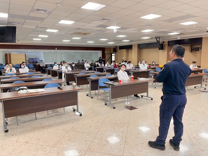 南警一分局鑑於轄區市立醫院醫護人員工作繁忙,長時間輪班及夜間通勤,容易忽略行車安全,特別於今日利用市醫早會時間,向醫護人員宣導交通安全知識,現場分析通勤中常見的危險情況,並提供實用防禦駕駛觀念,以避免事故發生。